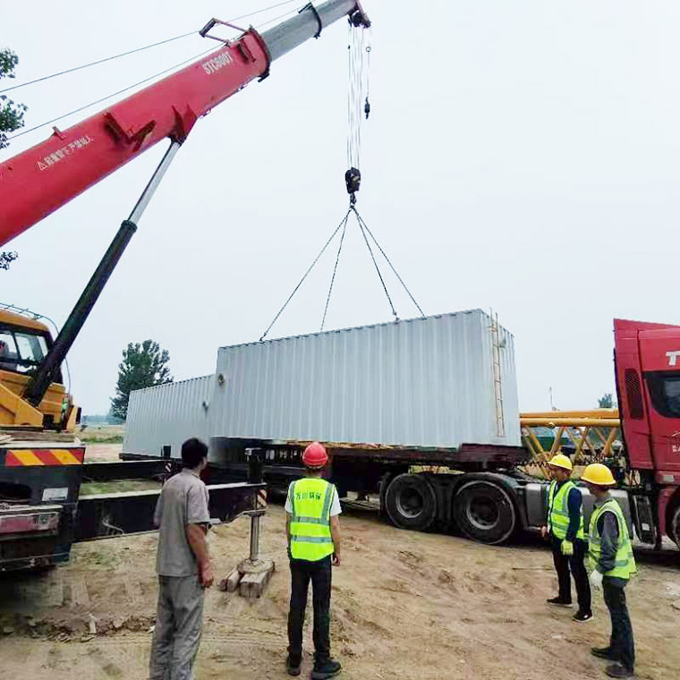 2023年6月17日(ri)隂雨緜緜,由我司提供建造的8檯一體化汚水處(chu)理設(shè)備全部順利到達(dá)商坵邏崗(gang)汚水(shui)廠(chǎng)。