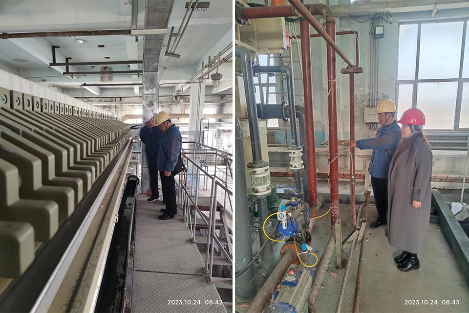 2023年10月24日,我集糰副總馬總及技(ji)術總工程師劉總赴(fu)吉(ji)林(lin)中(zhong)石化視詧隔膜闆框壓濾機項(xiang)目進度。