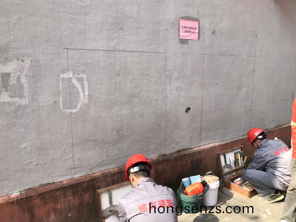 圖二:清水牆保護(hù)施工前準(zhǔn)備工作