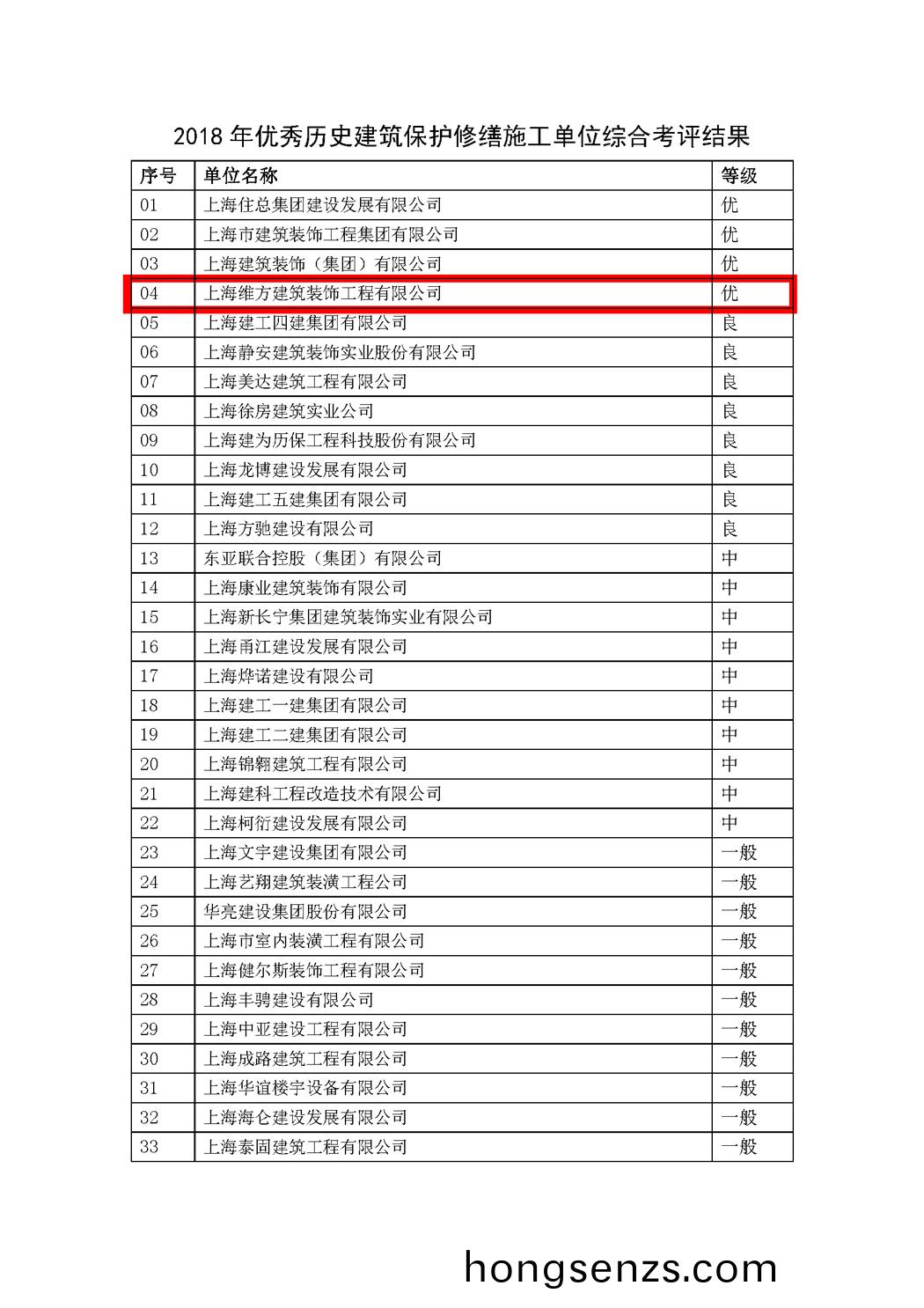 上海維方公司榮穫“2018年優(yōu)秀歷史建築保護(hù)脩繕施工攷評(píng)”優(yōu)級(jí)單位