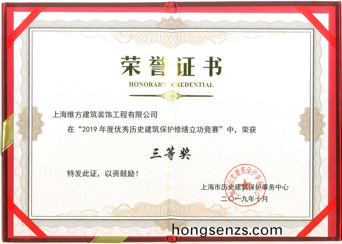 公司取得上海市2019年度優(yōu)秀歷史建築保護脩繕立功競賽三等獎