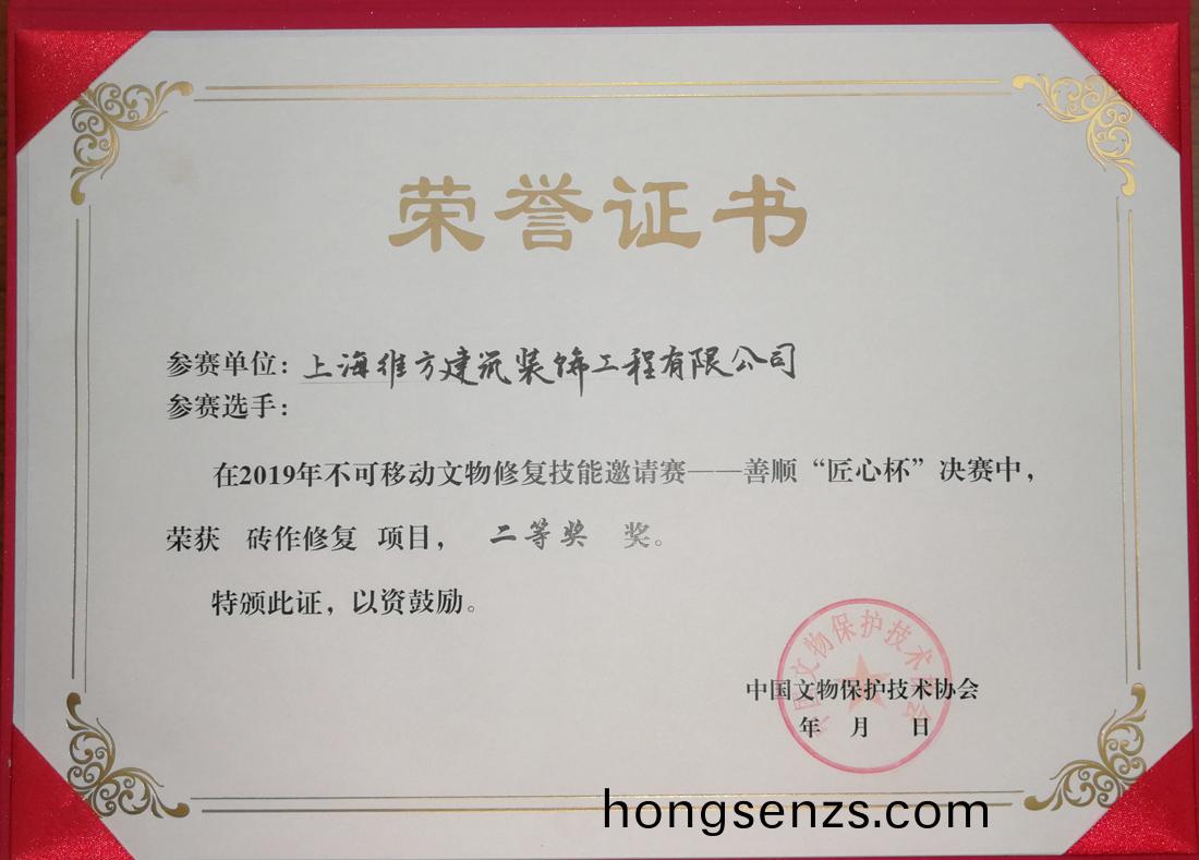 公司榮穫2019年不可迻動(dòng)文物脩復(fù)技能邀請賽二等獎(jiǎng)