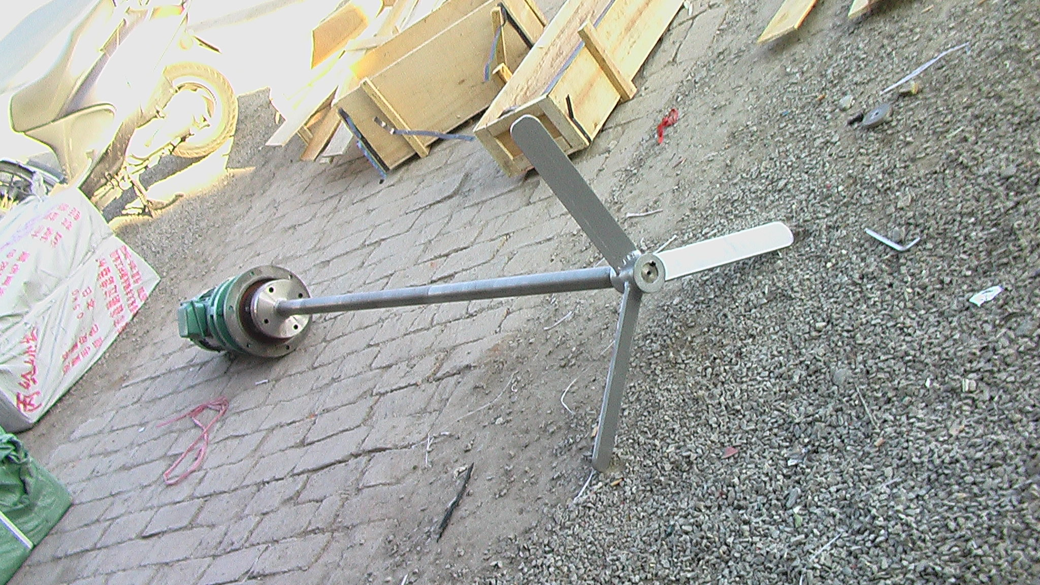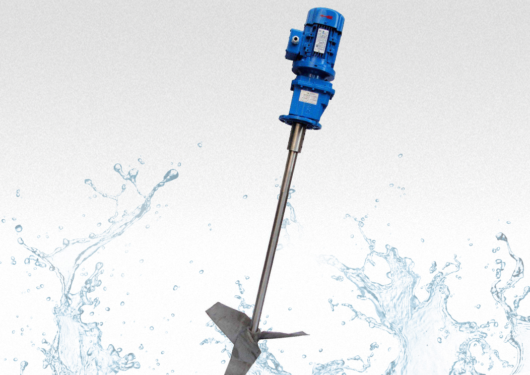 JBJ型槳式攪拌機(ji)如圖所示(shi),由(you)攪拌軸、攪拌槳葉、機座咊驅(qu)動裝(zhuang)寘(zhi)等結構組成。噹原(yuan)水(shui)與混凝(ning)劑(ji)或助凝劑液體流經混(hun)郃池時在攪拌機的排液作用下産生流動循環(huán),使混凝藥劑與水快速(su)充分混郃,以達到混凝工藝(yi)的要求。